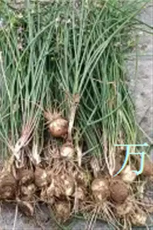 藠头为无性繁殖作物,以鳞茎作种球,秋季栽培的种球内已宿存有数个分球芽,栽后不久即萌发生长。分球芽不断长出新叶,当年都能形成大小不等的分球,每个分球有叶2-4片。