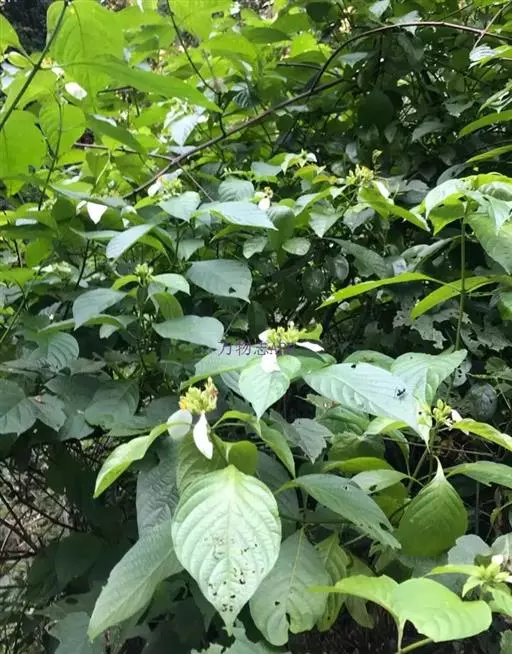 大叶白纸扇:又名白扇宝心。直立或藤状灌木,高1.3-2m。小枝圆形,被柔毛。叶对生;叶柄长1-3.5cm,有毛;托叶卵状披针形,长8-10mm,先端常2裂;叶片宽卵形或宽椭圆形,长10-25cm,宽5-12cm,先端近突渐尖,基部楔形,两面脉上被疏柔毛,侧脉约9对,叶膜质或薄纸质。聚伞花序顶生;苞片托叶状,长约8mm;花5数,具梗;萼筒陀螺状,长约4mm,裂片披针形,长达1cm,宽2-2.5mm,外被短柔毛,其中一片扩大成叶状,倒卵形,长3-4cm,宽1.5-2cm,白色;花冠黄色,长约1.4cm,裂片卵形,长约2mm,里面有污黄色粉末状绒毛;雄蕊着生于花冠筒中部;子房下位,2室,柱头压扁状,2裂。浆果近球形,直径约1cm。花期6月,果期9月。