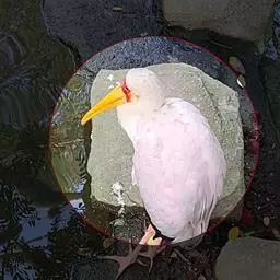 白头鹮鹳又叫彩鹳,羽色美丽,姿态优美。体长为93-102厘米,体重2-3.5千克,寿命最高可达28年以上。橙色的头部赤裸无羽,繁殖期变为红色。橙黄色的嘴粗而长,但嘴尖稍微向下弯曲,与白鹳、黑鹳等鹳属鸟类明显不同。通体白色。胸具宽阔的黑色横带。头的前半部裸出无羽,呈橙色。嘴橙黄色,长而粗,先端向下弯曲,脚亦特长,红色,胫的下部裸出。