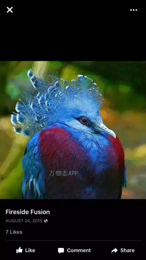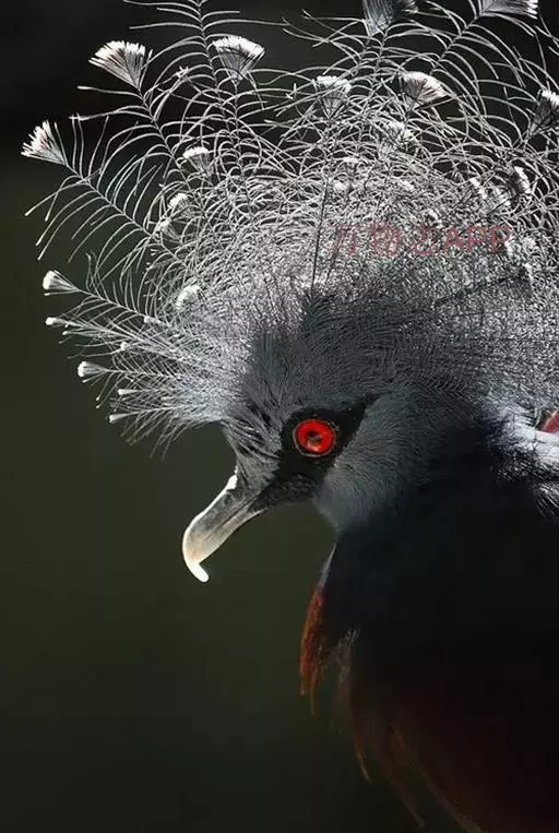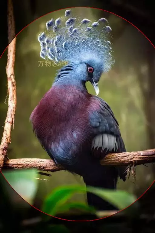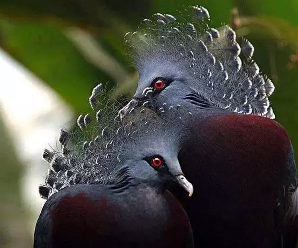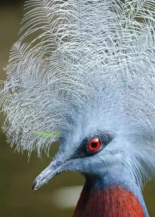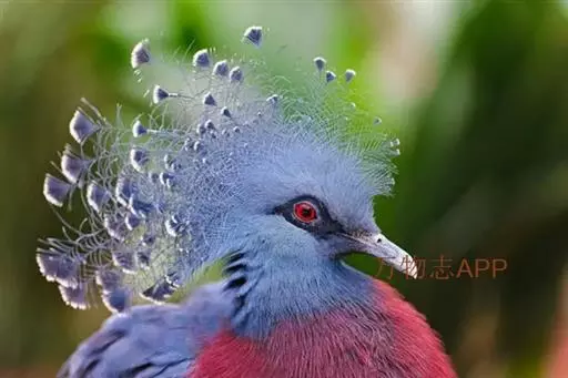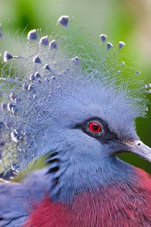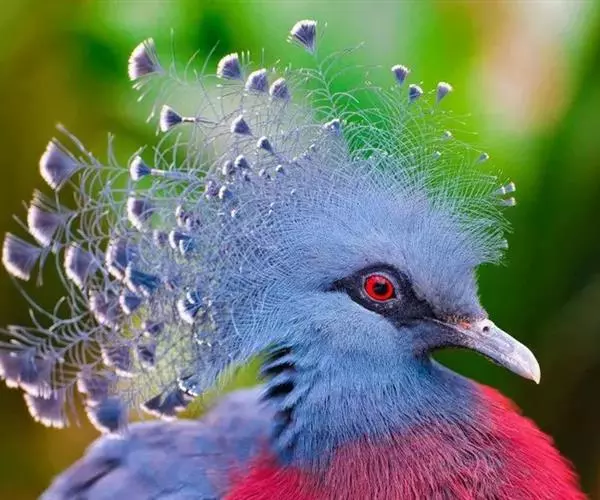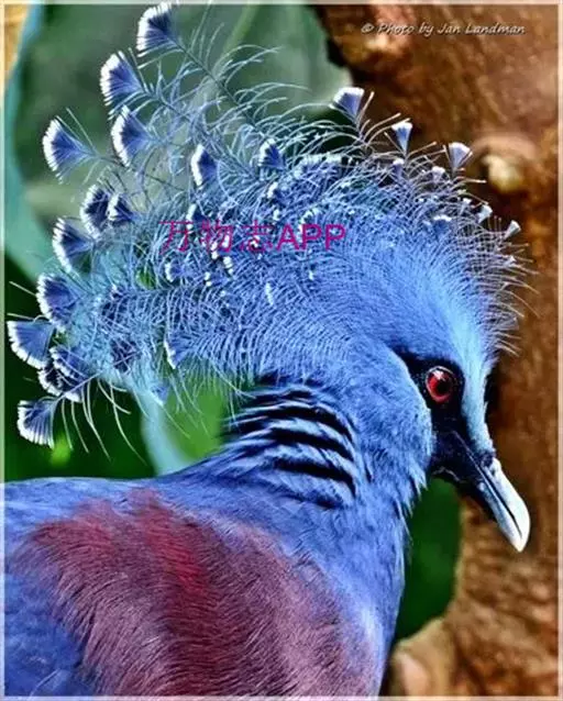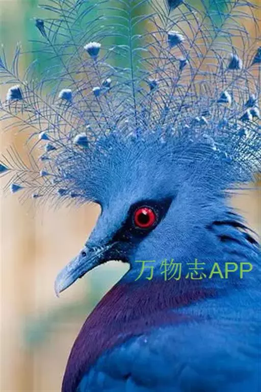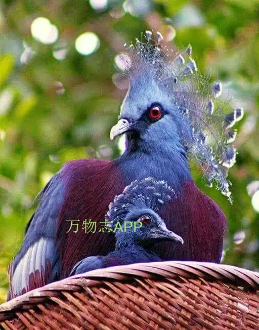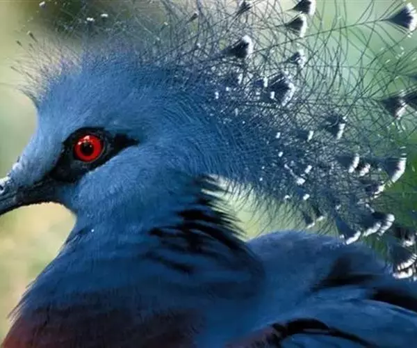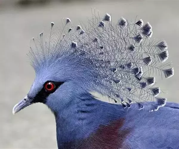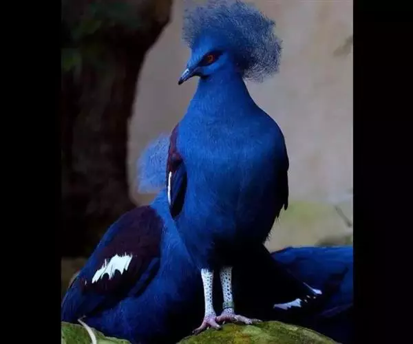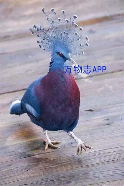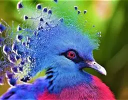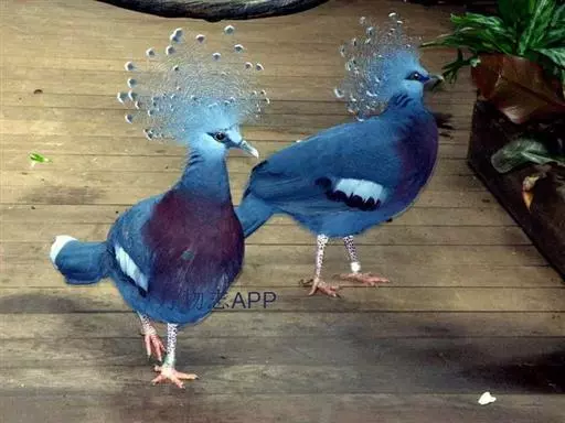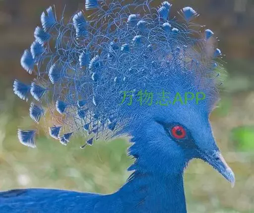蓝凤冠鸠(学名:Goura cristata)是鸠鸽类中最漂亮的成员,也是鸽鸠类中体型最大的一种,几乎和火鸡一般大。蓝凤冠鸠通体呈蓝色,羽毛光滑而整洁,在尾部和翅下分别有一块白色区域,翅膀中部部分至前胸略呈紫色,红色的眼睛炯炯有神,眼睛周围的羽毛颜色较深,腿部还长有小斑点。
