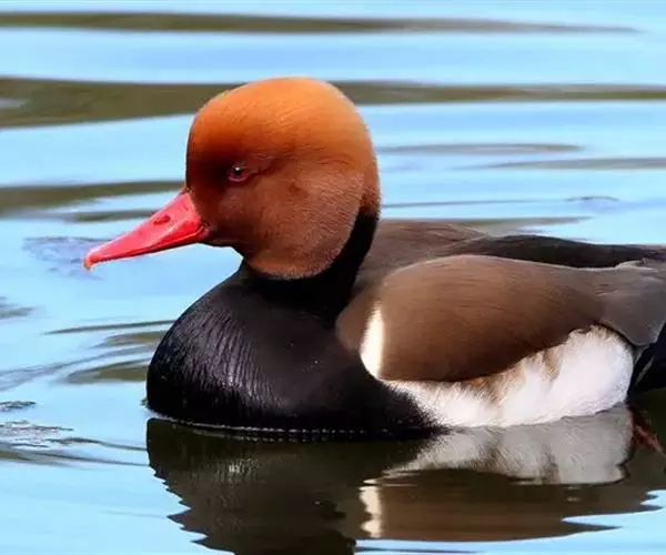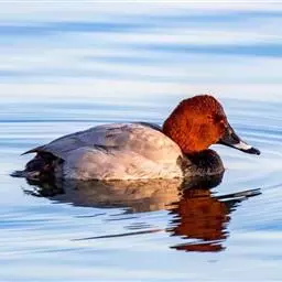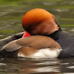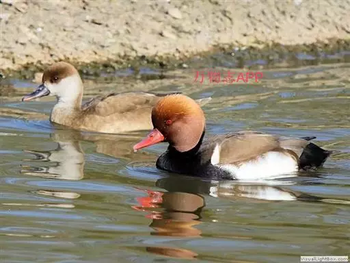 红头潜鸭(学名:Aythya ferina)体长42-49厘米,翼展72-82厘米,体重700-1100克,寿命10年。雄鸭头顶呈红褐色,圆形,胸部和肩部黑色,其他部分大都为淡棕色,翼镜大部呈白色。雌体大都呈淡棕色,翼灰色,腹部灰白。幼年雄鸭下部羽色较深,与雌体颇相似。雄体覆羽与雌性同,但头和颈部的红色比较浅些。眼鲜红色或红棕色;喙蓝黑色;脚青灰色或铅灰色;蹼关节和爪黑色。很少鸣叫,为深水鸟类,善于收拢翅膀潜水。杂食性,主要以水生植物和鱼虾贝壳类为食。有很好的潜水技能,在沿海或较大的湖泊越冬。繁殖于英国、斯堪的那维亚半岛南部、欧洲西伯利亚南部、蒙古和中国。越冬在欧洲南部、非洲北部、伊朗、阿富汗、巴基斯坦、印度、孟加拉国、缅甸、中南半岛、中国和日本等国家。