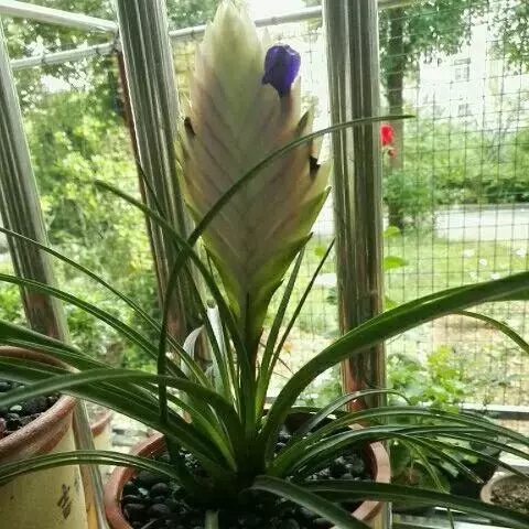 紫花凤梨,是凤梨科铁兰属的多年生草本植物。株高不及30厘米;叶片拱状线形,叶丛族生于短缩茎上,…