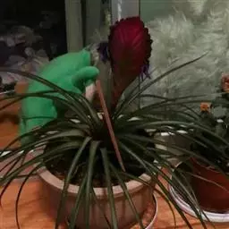 换盆:种植4个月后便需换盆,换盆时,先在盆底放一层介质,再把凤梨植株从小盆中连土取出,放在盆中央,周围放入介质,轻压以确保植株直立,同样介质不宜压得太紧,以确保良好的透气性。种植深度以3至4厘米为宜。换盆后立即浇透清水,一个月后便可浇肥。