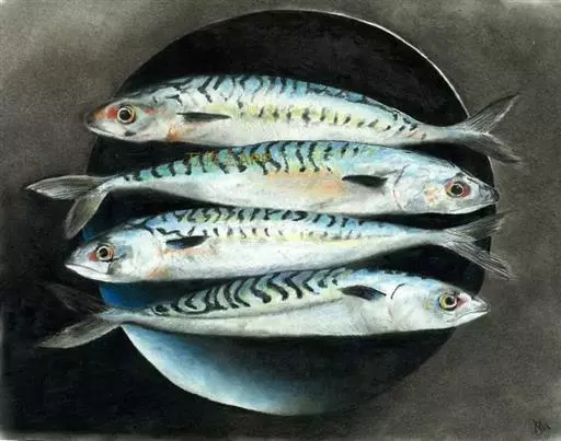 白腹鲭(学名:Scomber japonicus)是鲭科、鲭属鱼类。体纺锤形,稍侧扁;背缘和腹缘浅弧形;尾柄细短,尾鳍基部两侧各具2条小隆起脊。头中大,稍侧扁。吻钝尖,稍大于眼径。眼中大,位近头的背缘,具发达之脂性眼睑。口大,端位,斜裂;上下颌等长,上下颌各具细齿一列,上颌齿有时不明显;锄骨、腭骨具齿,舌上无齿。鳃耙正常,第一鳃弓上之下枝鳃耙数为25~35。体及颊部被圆鳞;侧线完全,沿背侧延伸,伸达尾鳍基。第一背鳍具硬棘Ⅸ~Ⅹ,与第二背鳍起点距离远,其后具5个离鳍;臀鳍与第二背鳍同形;尾鳍深叉形。体背侧蓝黑色,具深蓝色不规则之斑纹,班纹仅延伸至侧线上下,侧线下方无斑点;腹部银白而微带黄色。