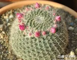 江守玉为仙人掌科强刺球属,植株扁圆形至球形,后成圆柱状,体色灰绿,刺座上附生白色绒毛,花橙黄色,漏…