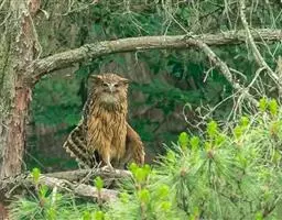栗鸮:是鸟纲、草鸮科的猫头鹰。体长约29厘米,体重311-360克。是一种中等体型的红褐色鸮。…
