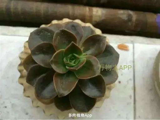 巧克力方砖为景天科拟石莲花属多肉植物,输中小型品种。植株肉质叶排成松散的莲座状。褐红色的叶片向内凹陷有明显的波折,叶缘有轻微米黄色边,强光下或者温差大,叶片会出现漂亮的紫褐色,如巧克力颜色。弱光则叶色浅褐绿,叶片拉长。植株叶面光滑,不容易积水。叶片无白粉,巧克力方砖需要接受充足日照叶色才会艳丽,株型才会相对紧凑美观,多年群生后,植株会非常壮观,特别是多年修剪过的老桩。巧克力方砖簇状花序,和大多数的石莲花一样的花型。