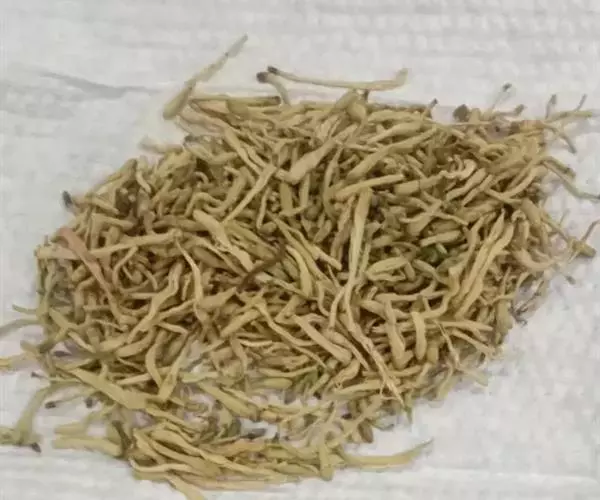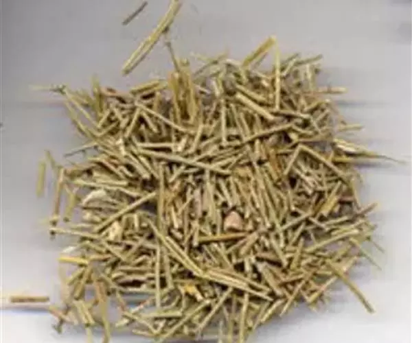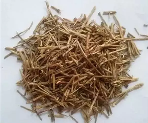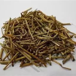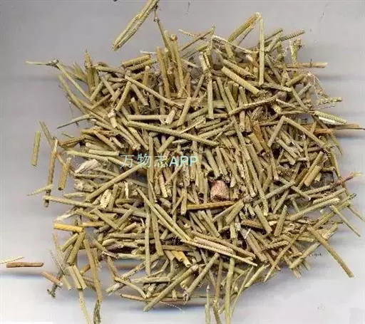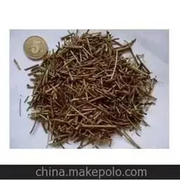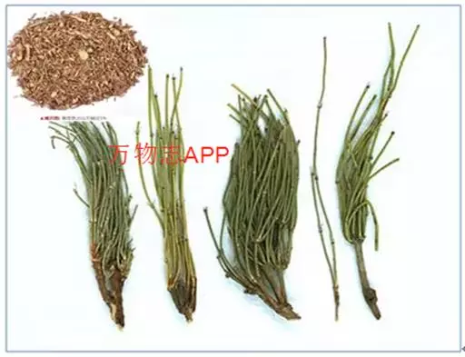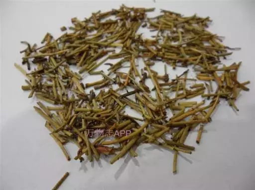 药材来源为麻黄科草麻黄的干燥草质茎。秋季采割绿色草质茎,晒干。呈细长圆柱形,少分枝,直径1-2mm,有的带少量质茎。表面淡绿至黄绿色,有细的纵棱线,触之微有粗糙感。节明显,节间长2-6cm,节上有膜质鳞叶,鳞叶2,稀3,锐三角形,长3-4mm,先端反曲,基部常连合成筒状。质较脆,易折断,折断时有粉尘飞出,断面略呈纤维性,周边绿黄色,髓部红棕色,近圆形。气微香,味微苦涩。