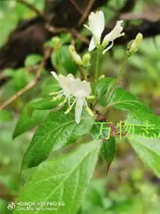 山银花在华南地区野外山林生长。木质藤本,长2~5m。树皮黄褐色渐次变为白色,嫩时有短柔毛。叶对生,…