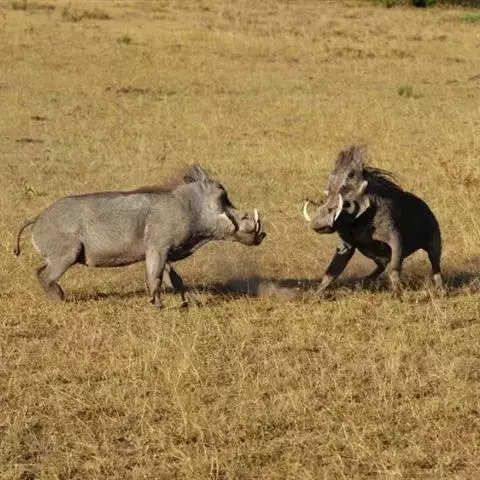 非洲疣猪:也称普通疣猪,体重在50-75千克之间,因眼部下方具疣而得名,在挖土取食时,…