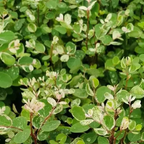 常绿小灌木。株高约50~120厘米,枝条暗红色 。叶互生,圆形或阔卵形,全缘。白色或有白色斑纹。嫩…