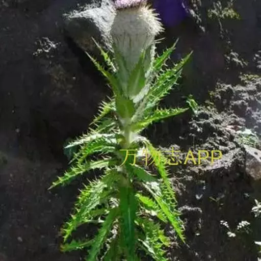 魁蓟菊科蓟属植物,多年生草本,高达1米,茎枝被长毛,基部和下部茎生叶长椭圆形或倒披针状长椭圆形,…