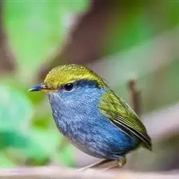 凤头雀莺:小型鸟类。体长9-10厘米,雄鸟呈毛茸茸的紫色和绛紫色,顶冠淡紫灰色,额及凤头白色,尾全蓝。…