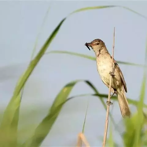大苇莺:属小型鸟类,雌雄两性羽色相似。眉纹淡棕黄色;眼褐色;翅褐色具淡棕色的边缘;尾羽亦褐色,…