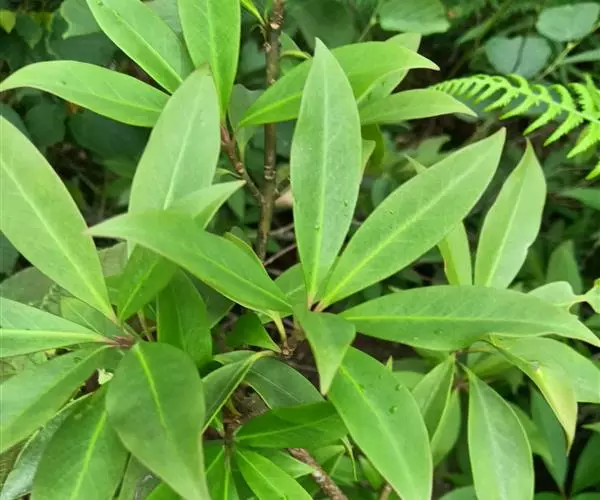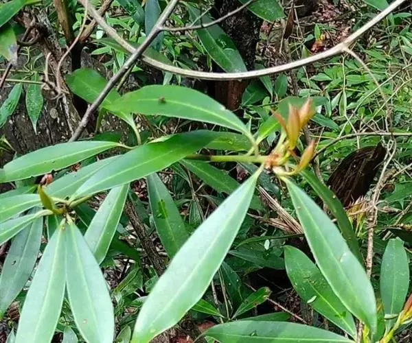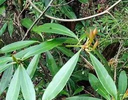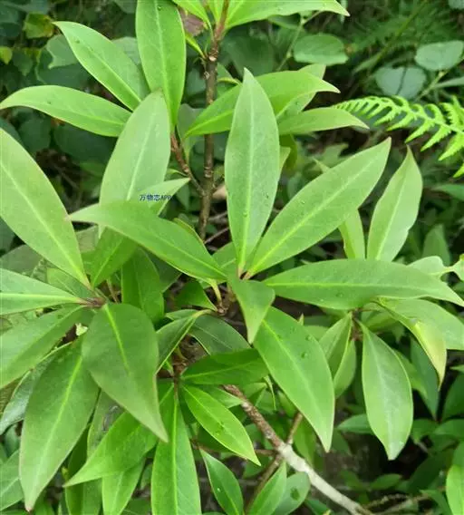 灌木,通常高1-2米,稀达10米。幼枝纤细。叶密集生近枝顶,3-8片簇生,或假轮生,薄革质,狭披针形或狭倒披针形,长5-12厘米,宽0.8-1.2(-2.7)厘米,先端急尾状渐尖或渐尖,基部渐狭,下延至叶柄成明显狭翅,中脉在叶上面稍凹下,在下面突起。