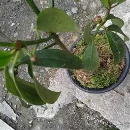 叶单生,互生,长椭圆形或倒卵状椭圆形,长 8~15 公分,宽 3~5 公分,先端渐尖,基部渐狭,革质,全缘但略反卷,侧脉不明显,表面有光泽无毛茸;叶柄长 0.6~1 公分。