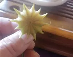 蓇葖果丛呈扁平八角形,由成熟心皮 10~15 枚所组成,每 1 心皮内仅含种子 1 枚;种子略呈长卵形,基部略凹陷。