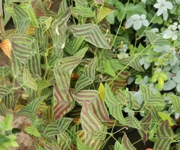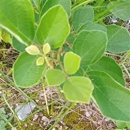 多年生直立草本,高60-120厘米。常由基部开始分枝,技较纤细,上部略被灰色柔毛。叶通常为单小叶,稀有3小叶;托叶刺毛状,长5-6毫米,脱落;叶柄长2-2.5厘米,被稀疏短柔毛;小叶近革质,灰绿色,顶生小叶菱形或长菱形或元宝形,长0.8-1.5厘米,宽5-9厘米,先端宽而截平,近中央处稍凹,基部略呈心形,侧生小叶倒心形或倒三角形,两侧常不对称,长8-15毫米,宽15-20毫米,先端截平,基部楔形或近圆形,上面无毛,下面稍被短柔毛,侧脉每边3-4条,平展,网脉在下面不明显;小叶柄长1毫米。