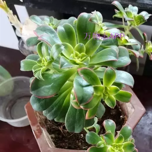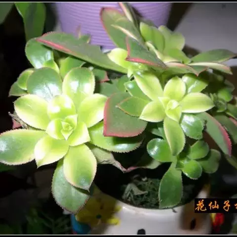 红缘莲花掌属蔷薇目、景天科植物,原产大西洋的加那利群岛。质厚,蓝绿色,被白霜,叶缘红褐色。聚伞花序,…