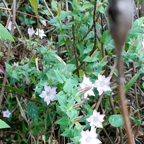 五叶龙胆,多年生草本,高8-15厘米。根多数,略肉质,细瘦,须状。花枝多数丛生,铺散斜升,紫红色或黄绿色,具乳突。生于山坡草地、林缘,海拔3400-4800米。