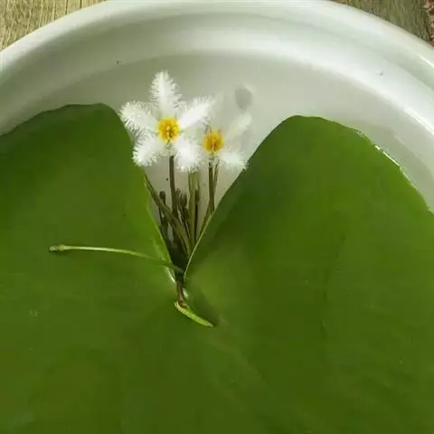 金银莲花 Kuntze)是睡菜科莕菜属的多年生水生草本。茎圆柱形,不分枝;单叶顶生,叶漂浮,近革质,…