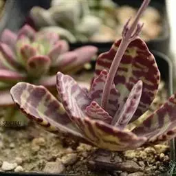 褐斑伽蓝是景天科伽蓝菜属的多年生多肉类植物,茎直立,多分枝,叶生于枝上,肉质叶片匙形,…