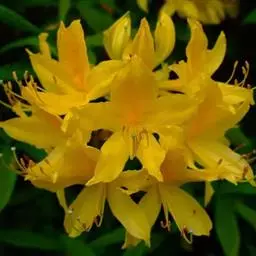 黄杯杜鹃(学名:Rhododendron wardii W. W. Smith):灌木,高约3米;幼枝嫩绿色,平滑无毛,老枝灰白色,树皮有时层状剥落。叶多密生于枝端,革质,长圆状椭圆形或卵状椭圆形,上面深绿色,下面淡绿色或灰绿色。总状伞形花序,有花5-14朵;花冠杯状,长3-4厘米,直径4-5厘米,鲜黄色,5裂,裂片近圆形。蒴果圆柱状,微弯曲,顶端渐尖成锥状,被腺毛。花期6-7月,果期8-9月。