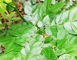 小叶3-5对,纸质,长椭圆形或卵状披针形,长5-16厘米,宽2-6.5厘米,先端尾状渐尖,基部圆钝;侧脉纤细,近平行,两面明显;小叶柄粗短,长2-3毫米。