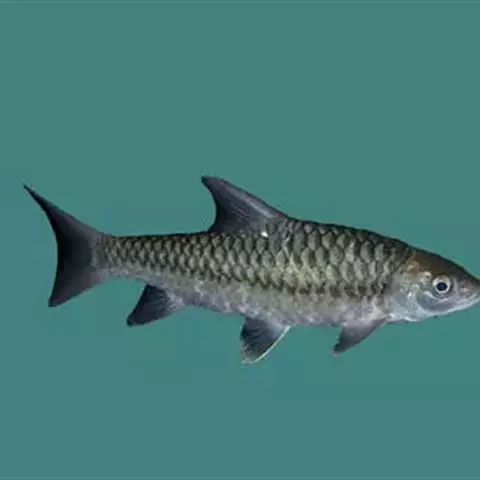 吻稍尖。口下位,呈马蹄形。口角须1对。背部灰黑 色,体侧浅黄色,体背有一条较细的黑色纹带,体侧中轴也有一条黑色纹带。尾鳍叉型。