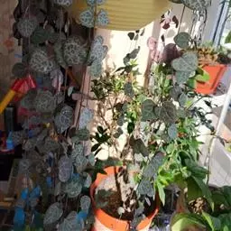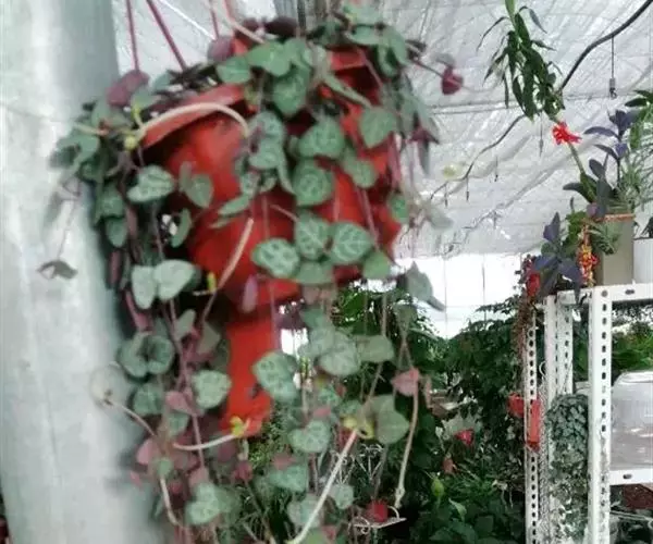 光照:该种性喜散射光,夏季要避免强光照射,否则容易引起叶片灼 开花中的爱之蔓 伤,影响植株生长。 一年中春、秋、冬三季每天可以见二小时左右的晨光,夏季散光即可,但如果养护环境长期过阴而光线不足,则会造成节间易徒长,失去观赏价值。