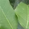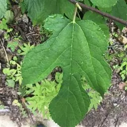 叶螺旋状排列,广卵形至长椭圆状卵形,长6-18cm,宽5-9cm,先端渐尖,基部心形,两侧常不相等,边缘具粗锯齿,不分裂或3-5裂,小树之叶常有明显分裂,表面粗糙,疏生糙毛,背面密被绒毛,基生叶脉三出,侧脉6-7对;叶柄长2.5-8cm,密被糙毛;托叶大,卵形,狭渐尖,长1.5-2cm,宽0.8-1cm。