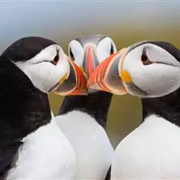 角嘴海雀,是海雀科、角嘴海雀属的中型海鸟,体长32-41厘米,嘴短而粗呈圆锥状、橙色。夏羽上嘴基部…