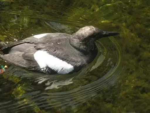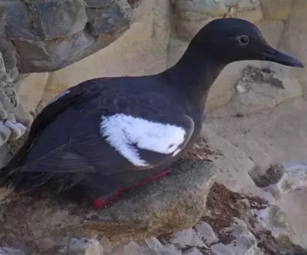 海鸽为海雀科海鸽属动物,是一种黑白两色的海鸟。一般嘴尖,腿红色。能潜入深水于底层觅食。