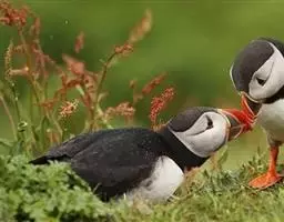 凤头海雀:是鸟纲、鸻形目、海雀科的一种海鸟。体重211-322克,体长18-20厘米。前趾间有蹼膜,…