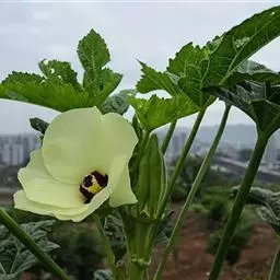 咖啡黄葵 Moench)亦称黄秋葵,是锦葵科一年生草本植物。茎圆柱形,疏生散刺。叶掌状,裂片阔至狭,…