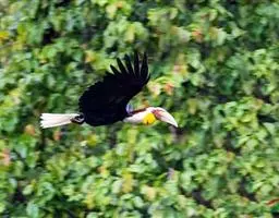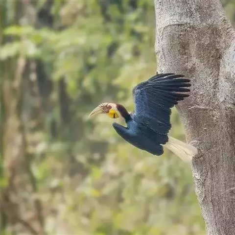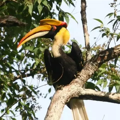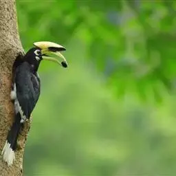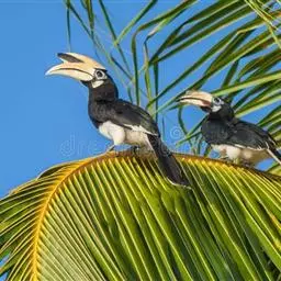犀鸟是旧大陆的一类热带鸟,属佛法僧目(树栖鸟类的一个目,主要包括佛法僧、翠鸟、戴胜等),犀鸟科。它们的外貌特别引人注目,头骨像头盔,套在突出的喙上面。犀鸟中体型最小的是红喙野村综合研究所鸟,体长约40厘米。最大的大野村综合研究所鸟,身长达160厘米,它是典型的大头、细颈、宽翅膀、长发展巴鸟。羽毛呈褐色或黑色,上面通常都有明显的白色标记。