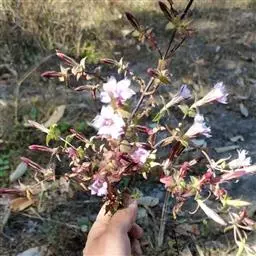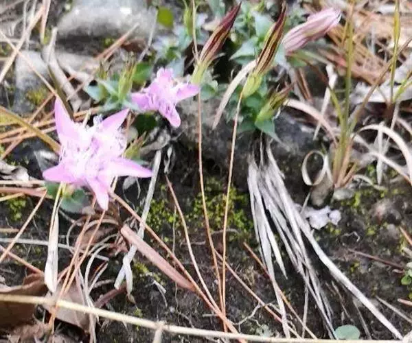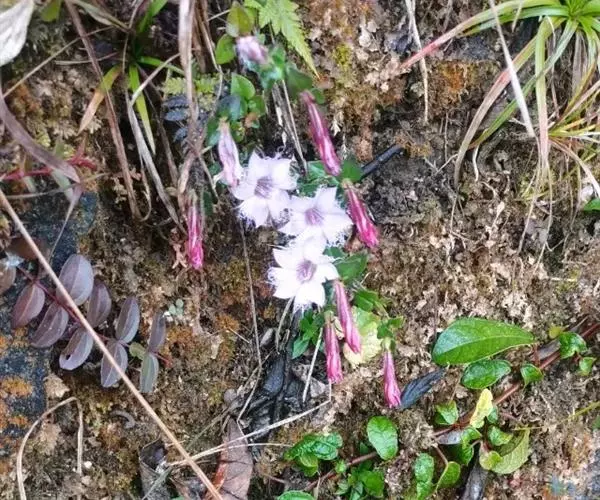 红花龙胆(Gentiana rhodantha Franch. ex Hemsl. )多年生草本,具短缩根茎。根细条形,黄色。茎直立。基生叶呈莲座状,椭圆形、倒卵形或卵形;茎生叶宽卵形。花单生茎顶,无花梗;花萼膜质,有时微带紫色;花冠淡红色,上部有紫色纵纹,筒状,上部稍开展;雄蕊着生于冠筒下部,花丝丝状,花药椭圆形;子房椭圆形。蒴果内藏或仅先端外露,淡褐色,长椭圆形,两端渐狭,果皮薄,种子淡褐色,近圆形,具翅。花果期10月至翌年2月。