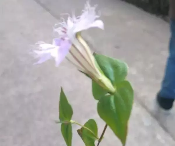 花单生茎顶,无花梗;花萼膜质,有时微带紫色,萼筒长7-13毫米,脉稍突起具狭翅,裂片线状披针形,长5-10毫米,边缘有时疏生睫毛,弯缺圆形;花冠淡红色,上部有紫色纵纹,筒状,上部稍开展,长3-4.5厘米,裂片卵形或卵状三角形,长5-9毫米,宽4-5毫米,先端钝或渐尖,褶宽三角形,比裂片稍短,宽4-5毫米,先端具细长流苏;雄蕊着生于冠筒下部,花丝丝状,长短不等,长者长约12毫米,短者长约5毫米,花药椭圆形,长约3毫米;子房椭圆形,长约10毫米,柄短,长4-5毫米,花柱丝状,长约6毫米,柱头线形,2裂。
