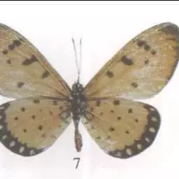 斑珍蝶:为蝴蝶中小型美丽种类。翅面棕色,斑纹黑色,前翅外缘中上部有浅黑带,中室内有2个横斑,…