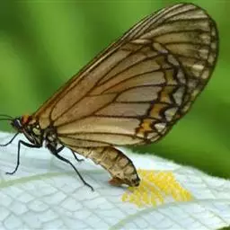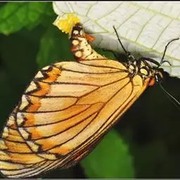 苎麻珍蝶是翅橙黄色或褐色,外缘有宽的黑色带,黑色带外缘锯齿形,翅脉纹黄褐色或褐色,前翅常有黑色斑纹,…