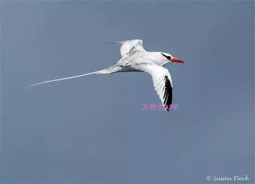 红嘴鹲属中型海鸟。体长约46厘米(不包括尾部飘带),全长约105厘米,翼展99-106厘米,体重700克。中央尾羽延长,形长的中央尾羽白色,长约体长的1/3;嘴红色,大而直,长55-60毫米;眼先有1黑斑,经眼后延至颈,形成1条宽阔的贯眼纹;背具黑色横斑;初级飞羽黑,内翈具宽阔白缘。具全蹼,四趾均朝前;嘴下常有发育程度不同的喉囊。