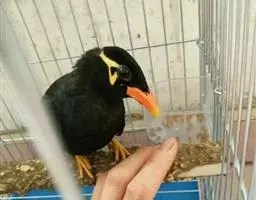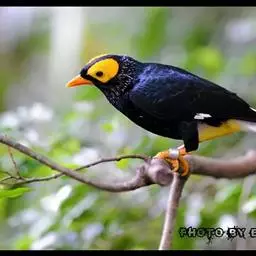 金冠树八哥为椋鸟科树八哥属的鸟类。体长约23厘米,闪辉黑色。特征为具翼斑及颏黄色,脸颊裸露皮肤粉黄色。…