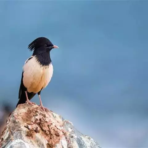 黑冠椋鸟:中等体型的椋鸟,体长21厘米。雄鸟前头为黑色并具金属光泽;头顶、颈项和羽冠亦为黑色;翅及翅上覆羽黑色;尾羽褐色,具白色端斑;上体灰色;下体淡黄褐色。雌鸟形态与雄鸟相似,但羽冠较雄鸟为短。虹膜蓝白或乳黄色;嘴峰铅绿色;跗蹠及爪柠檬黄色。头具黑色羽冠,与其他椋鸟易于区别。主要栖息于开阔落叶阔叶林和灌木林中以及多营巢于树洞中或其他洞穴内。属群鸟共栖。常4-8只结小群活动。鸣声清脆响亮。食物有果实和浆果,偶食花蜜和小型昆虫。分布于印度、中国云南耿马。常见于印度城镇、村庄及铁路沿线。偶见于中国云南西南部和西藏东南部。