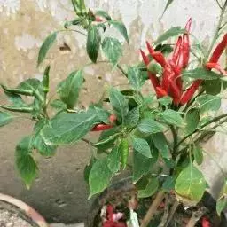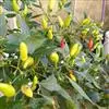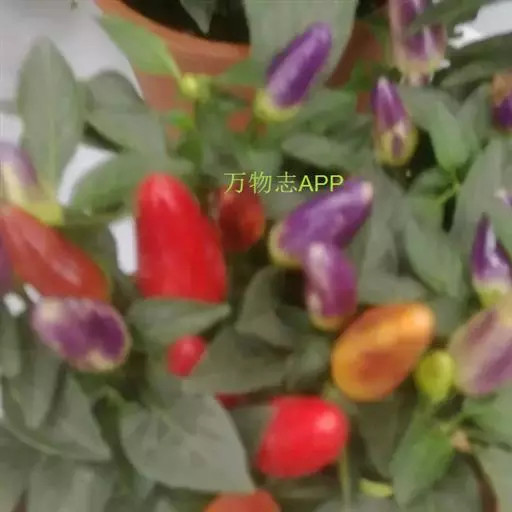 五色椒又名朝天椒,五彩辣椒,为辣椒 变种,味涩。属茄科多年生半木质性植物,常作一年生栽培;江苏沭阳一带有不少花农种植,其株高30厘米—60厘米,分枝多、茎直立,单叶互生;花白色,开花期5月初—7月底,果实簇生于枝端。同一株果实有红、黄、紫、白等颜色,有色泽,盆栽观赏很逗人喜爱,也可食用,风味同青椒。 辣椒果色鲜艳,点缀在绿叶中,灵巧可爱。可以单株培植于小盆中或数株合植于稍大的盆中,陈设于客厅、卧室或厨房,装饰效果非常好。全草入药,根茎性温、味甘,能祛风散寒,舒筋活络并有杀虫、止痒功效。植株对空气中的二氧化硫和三氧化硫等有毒气体有一定的吸收和抵抗能力。