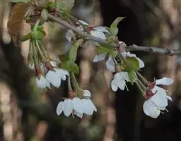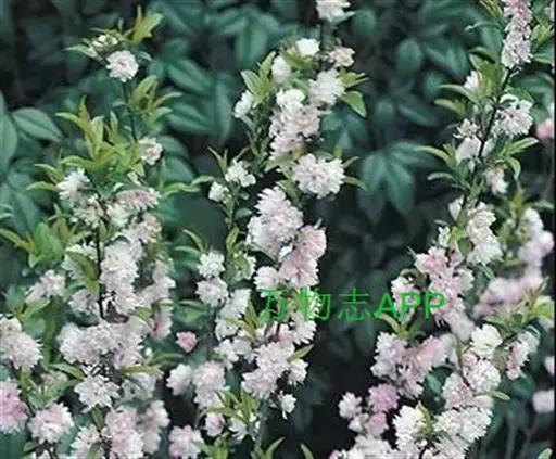 麦李(学名:Cerasus glandulosa (Thunb.) Lois.):蔷薇科樱属,落叶灌木,高达2米。叶卵状长椭圆形至椭圆状披针形,长5-8厘米,先端急尖而常圆钝,基部广楔形,缘有细钝齿,两面无毛或背面中肋疏生柔毛;叶柄长4-6毫米。花粉红或近白色,径约2厘米,花梗长约1厘米。果近球形,径1-1.5厘米,红色。