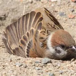 山麻雀:小型鸟类,体长13-15厘米。雄鸟上体栗红色,背中央具黑色纵纹,头棕色或淡灰白色,颏、喉黑色,…