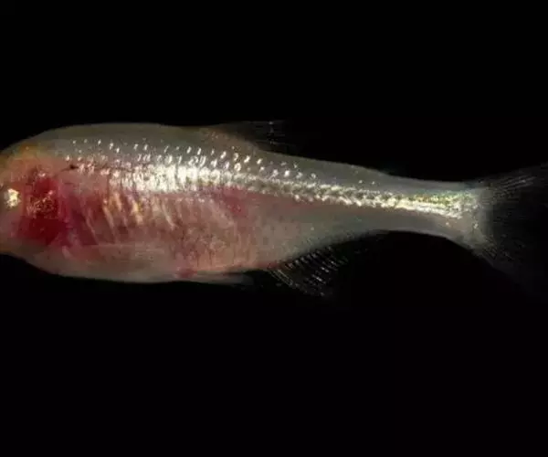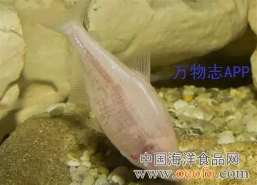 盲鱼又名无眼鱼、墨西哥盲鱼。鱼体呈长形,稍侧扁,尾鳍叉形,体长约 8 厘米。盲鱼体色呈乳白色,各鳍与体色一致并透明。