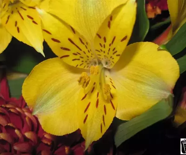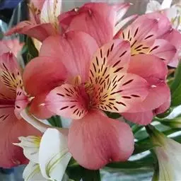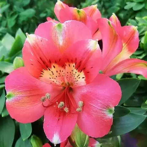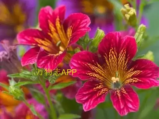 六出花(Alstroemeria aurantiaca D.Don)也叫智利百合、秘鲁百合等,是石蒜科、六出花属多年生草本,原产智利,高60~120厘米。花朵像杜鹃又像水仙,茎和叶子则像是百合花。叶多数,叶片披针形,有短柄或无柄。伞形花序,花10~30朵,花被片橙黄色、水红色等,内轮有紫色或红色条纹及斑点。花期6~8月。