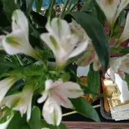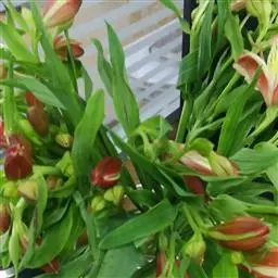 6、修剪:六出花盆栽常用12~15厘米盆,10月中旬盆栽,栽植深度3~5厘米,栽后浇透水,30天后长出叶芽。入冬后,新芽生长迅速,茎叶密生,影响基部花芽生长,需疏叶,去除细小的叶芽,保留粗壮的花芽,达到株矮、花多的目的。