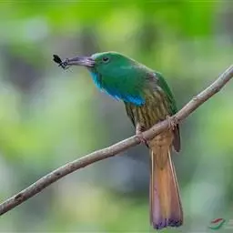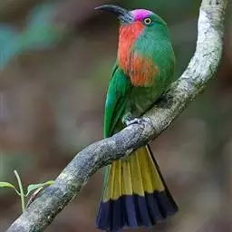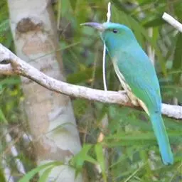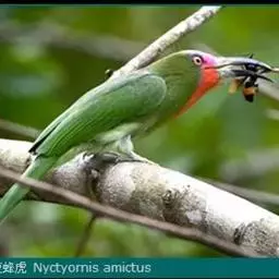 蓝须夜蜂虎是佛法僧目、蜂虎科的鸟类,体长约30厘米,是绿色林栖型蜂虎,蓝色的胸羽蓬松,嘴厚重而下弯…